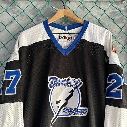 Jersey Vintage de Tampa Bay De Hombre Talla L Color Negro Blanco y Azul De l NHL Hockey Rayos Bakka