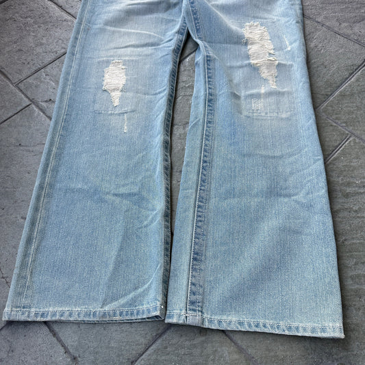 Pantalon Franky Max De Hombre Talla 38x32 Azul Claro Con Rasgados Nuevo Con Etiquetas Y2K Recto