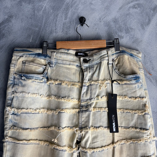 Pantalón Nuevo Novamen Para Hombre Talla 38 Azul Beige Deslavado Descocido