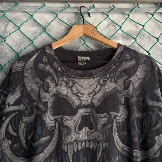 Playera Liquid Blue Para Hombre Talla 2XL Color Negro Deslavado Cráneo de Demonio Flamas Azules