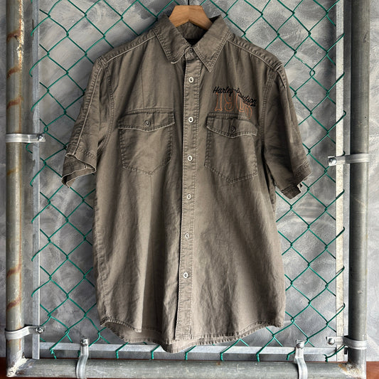Camisa De Botones Vintage Harley Davidson De Hombre Talla M Color Gris Estilo Mecanico Bordado