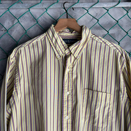 Camisa De Botones Polo Ralph Lauren De Hombre Talla XL Color Amarilla De Rayas Verticales De Vestir