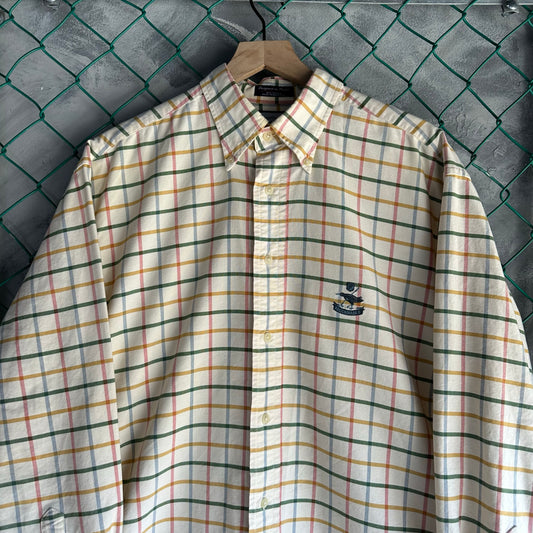 Camisa De Botones Faconnable De Hombre Talla L Color Crema De Cuadros De Vestir