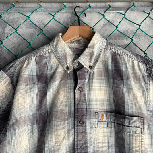 Camisa de Botones Manga Corta Vintage Carhartt Para Hombre Talla M Color Gris Bajo de Cuadros