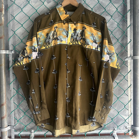 Camisa De Botones Vaquera De Hombre Talla L Color Cafe Sombrero Azteca