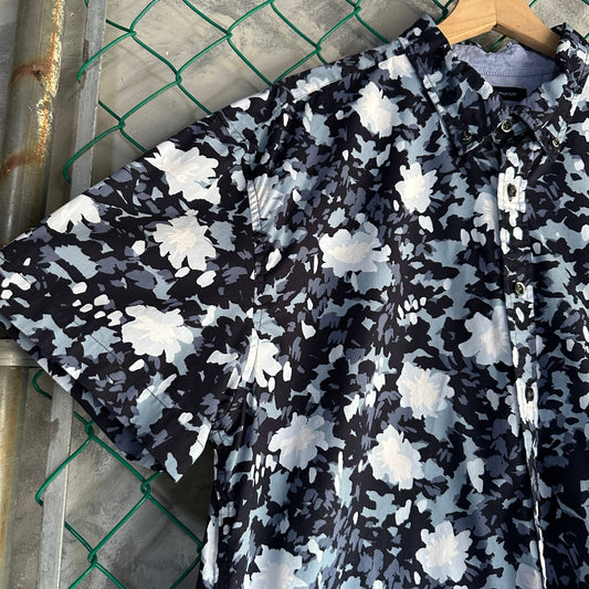 Camisa De Botones Tommy Hilfiger De Hombre Talla 2XL Color Azul Y Blanco Hawaina Manga Corta Fresca