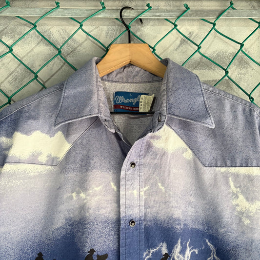 Camisa De Botones Wrangler Para Hombre Talla L Color Negro con Azul Western Shirts