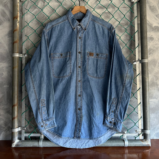 Camisa De Botones Wrangler De Hombre Talla L Color Azul De Mezclilla Manga Larga Mecanico Workwear Lisa