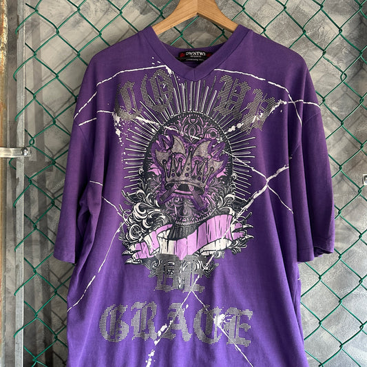 Camisa Y2K De hombre Talla 2XL Color Morado Big Print Brillos Y Pedreria