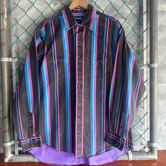 Camisa Vintage Wrangler De Hombre Talla XL Color Azul Y Rosa Estilo Vaquero Tela Gruesa