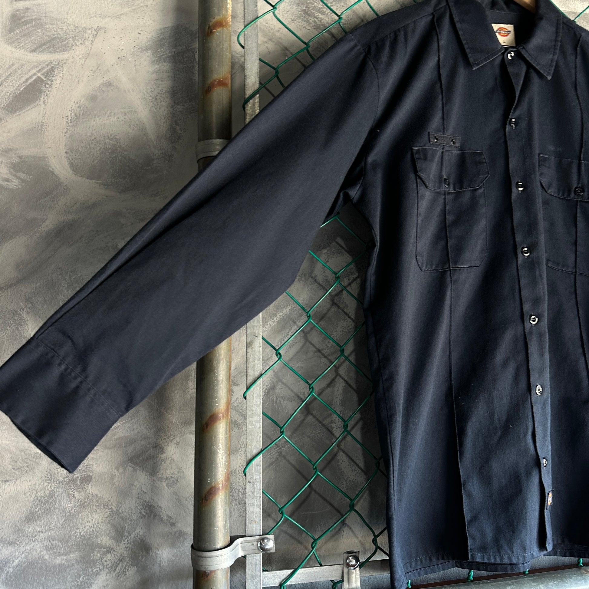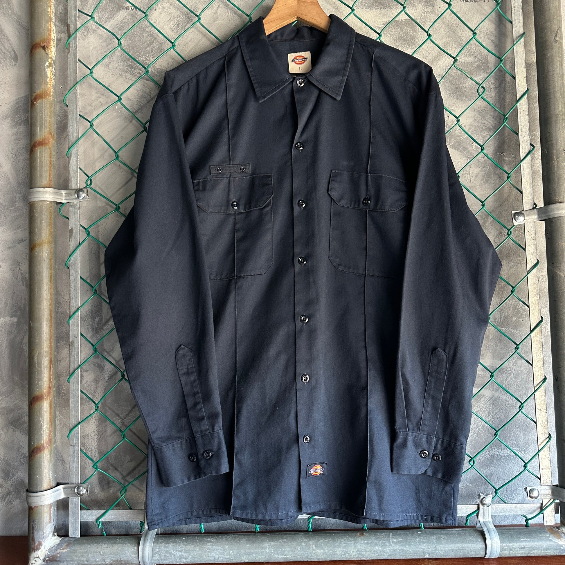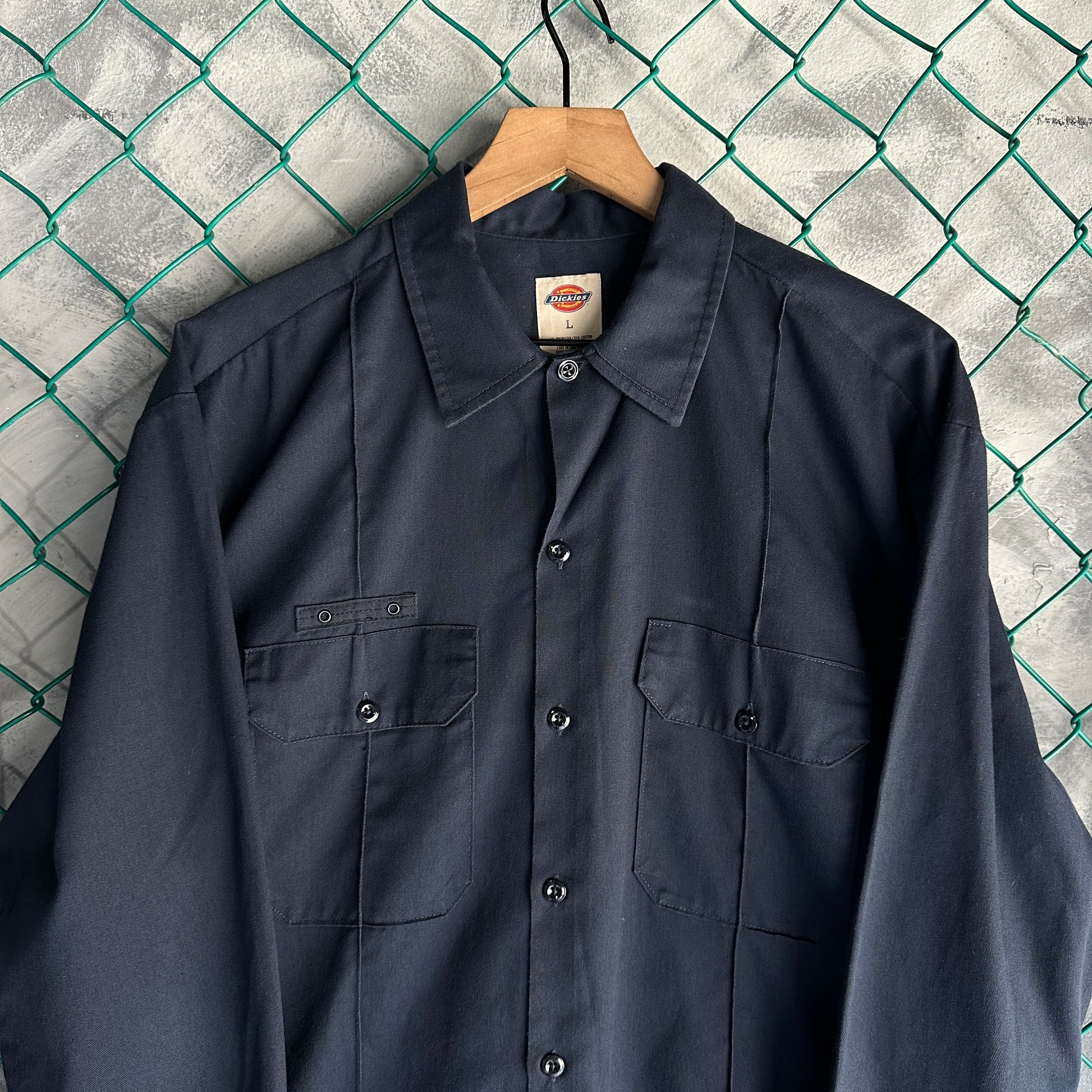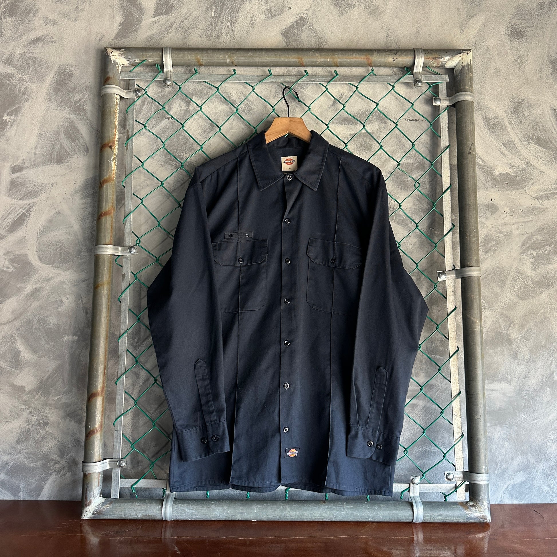 Camisa De Botones Dickies De Hombre Talla L Color Azul Marino Manga Larga Mecanico Workwear Lisa