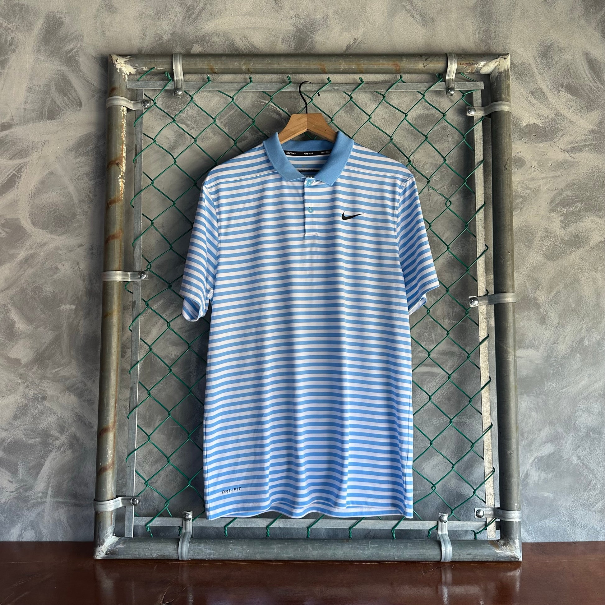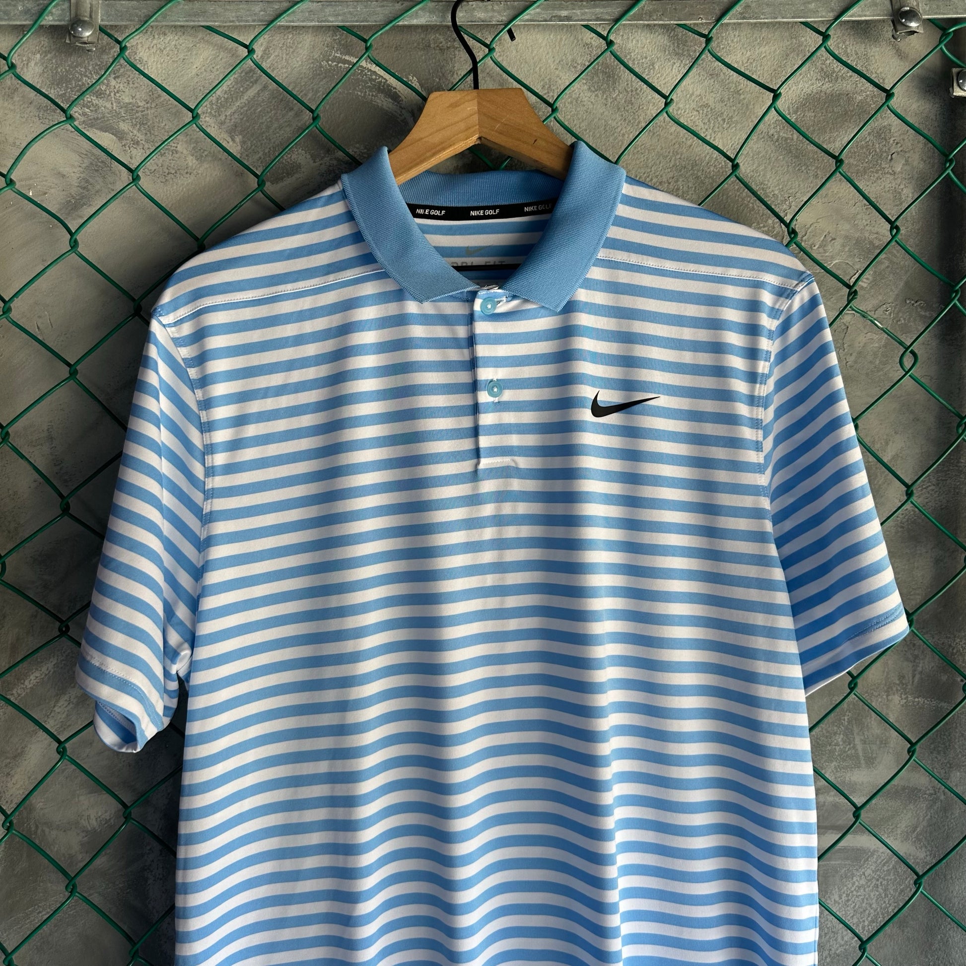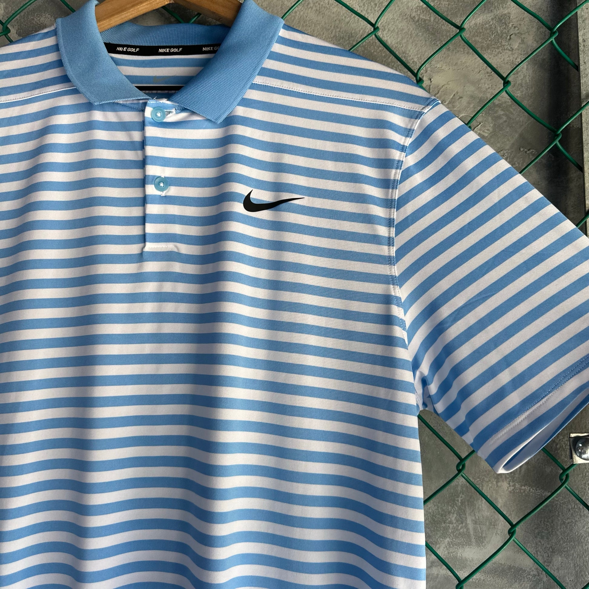 Camisa Nike De Hombre Talla L Color Azul y Blanco de Rayas Golf Tipo Polo Sin Detalles