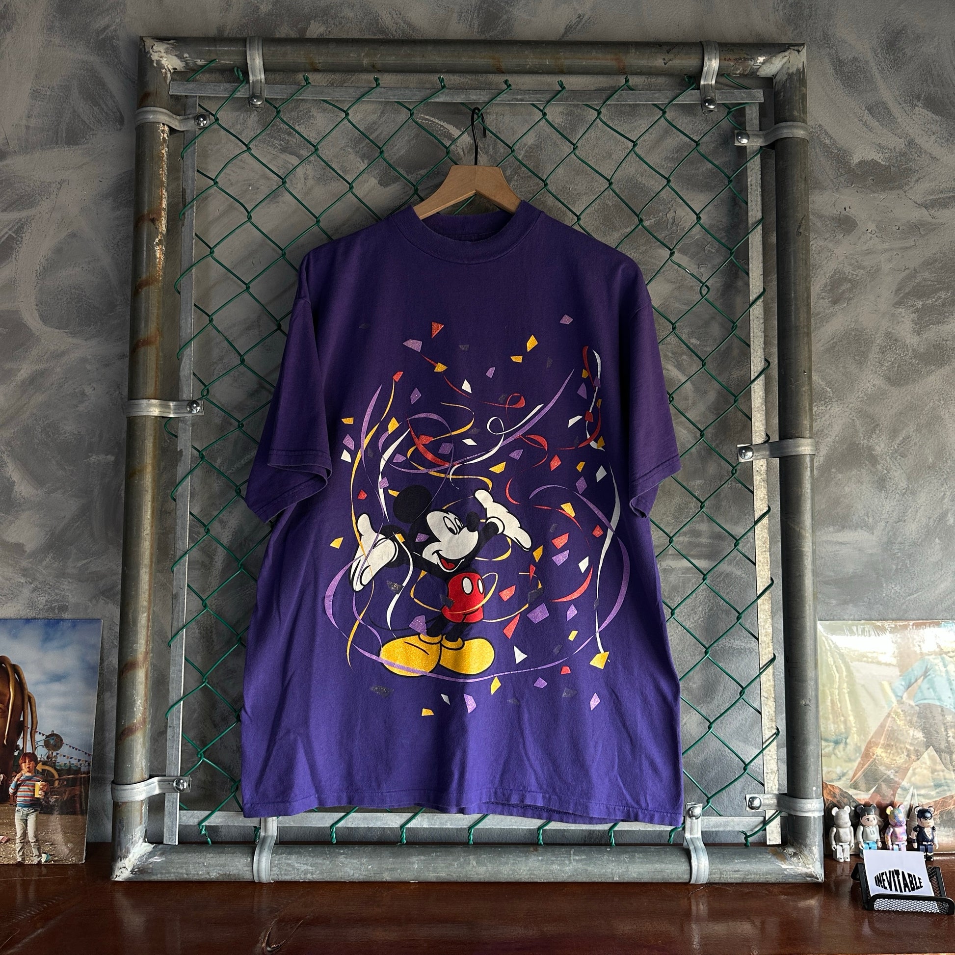 Camisa Vintage de Mickey Mouse De Hombre Talla 2XL Color Morado AOP Confeti DisneyLand
