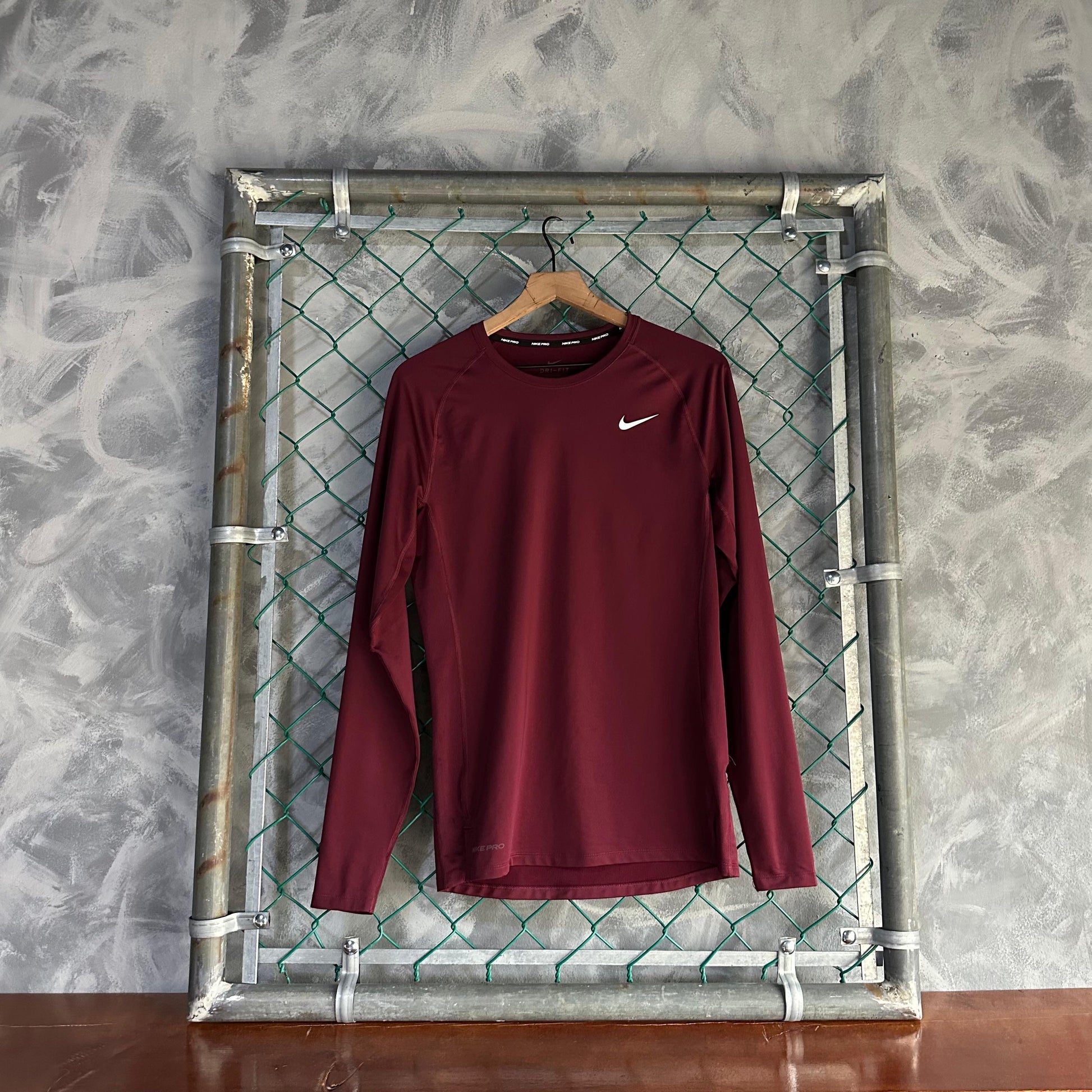 Camisa Deportiva Nike De Hombre Talla L Color Rojo Vino Manga Larga Dri Fit Pro