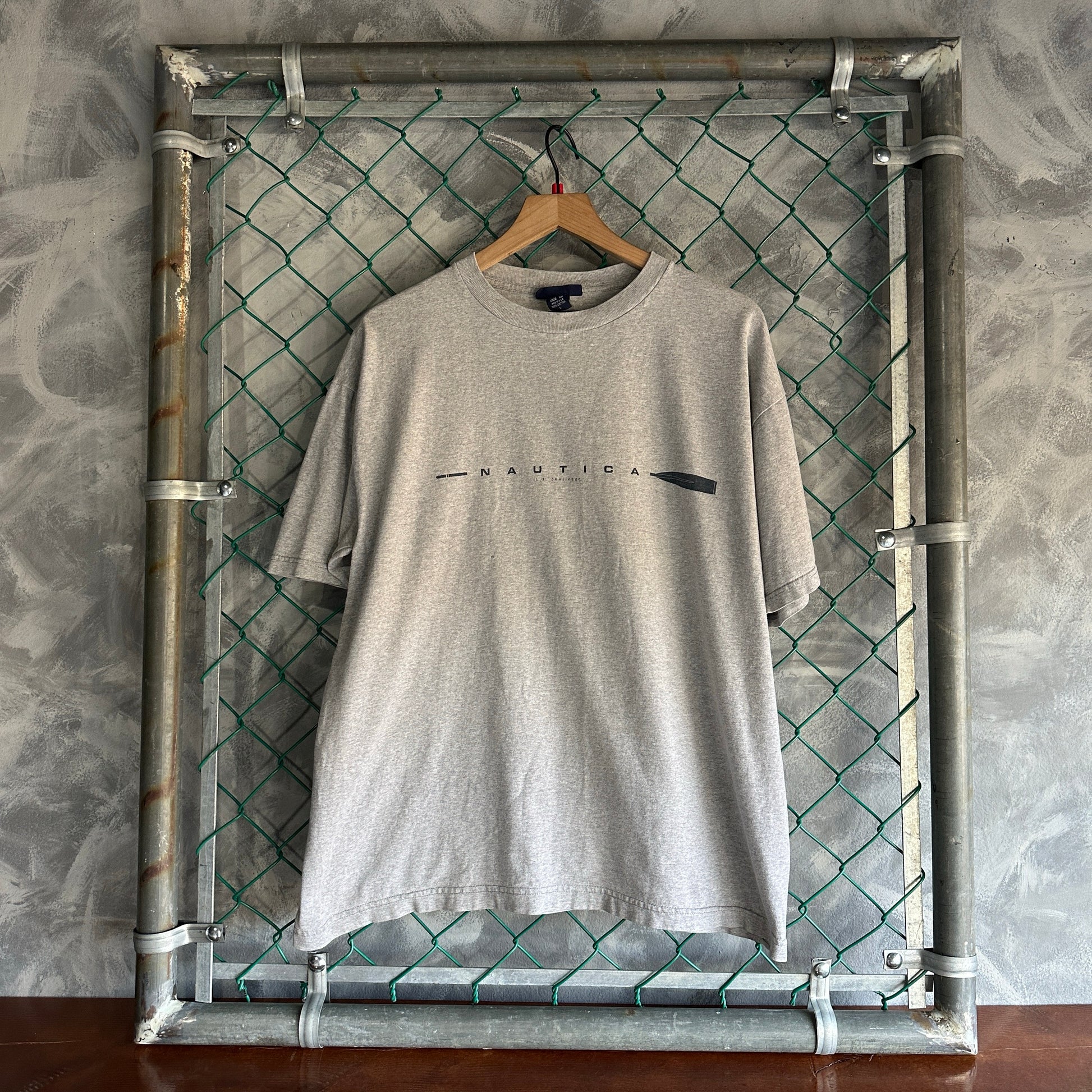 Camisa Vintage Nautica de Hombre Talla L Color Gris Oversize Boxy Cuello Grueso