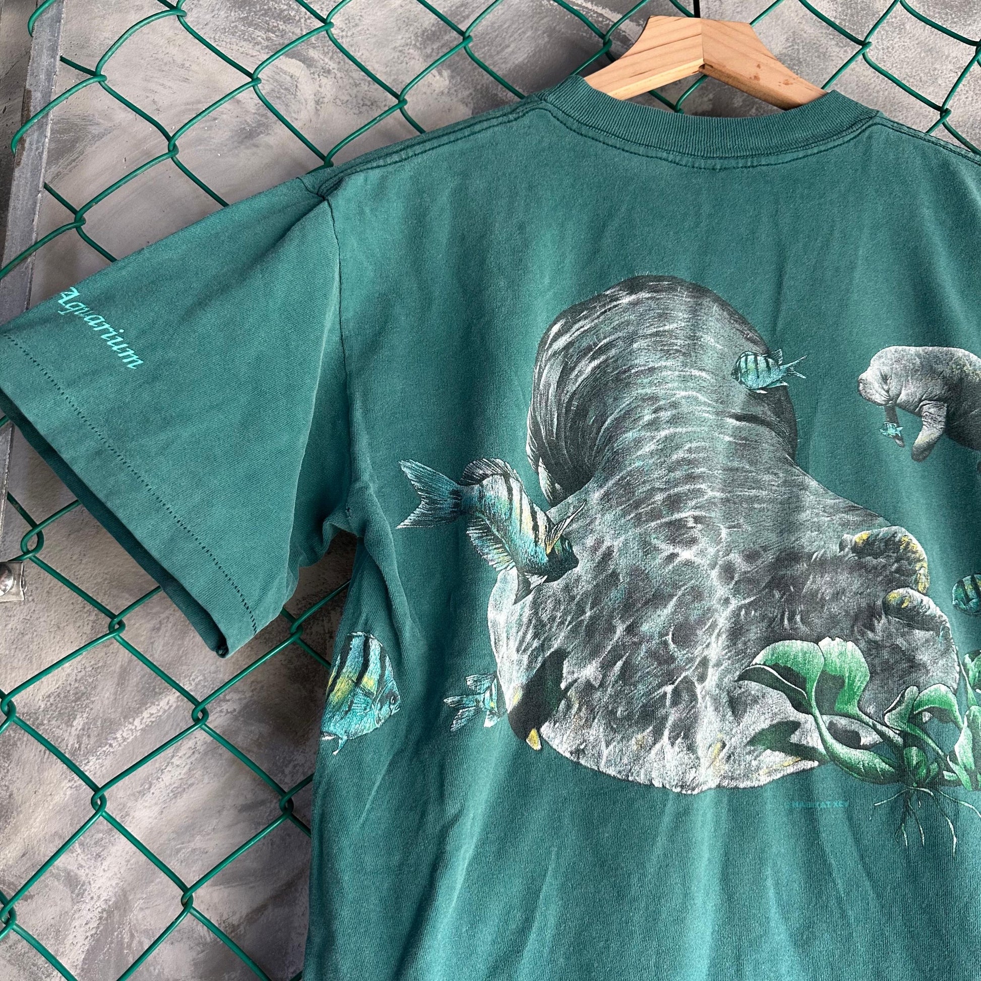 Camisa Vintage de Manati De Hombre Talla M Color Verde Naturaleza Peces Oceano USA
