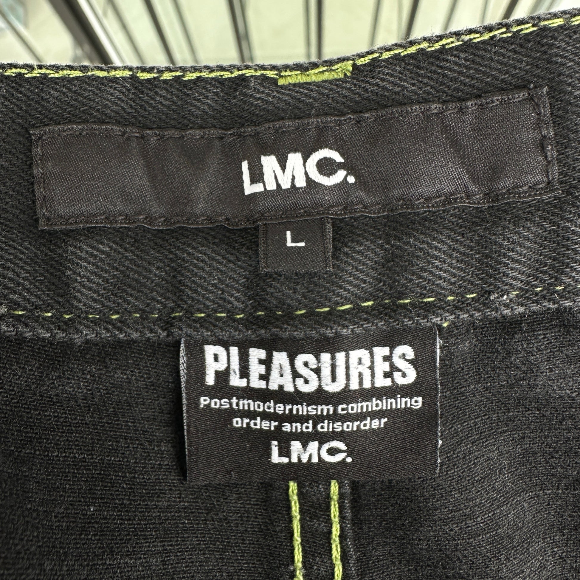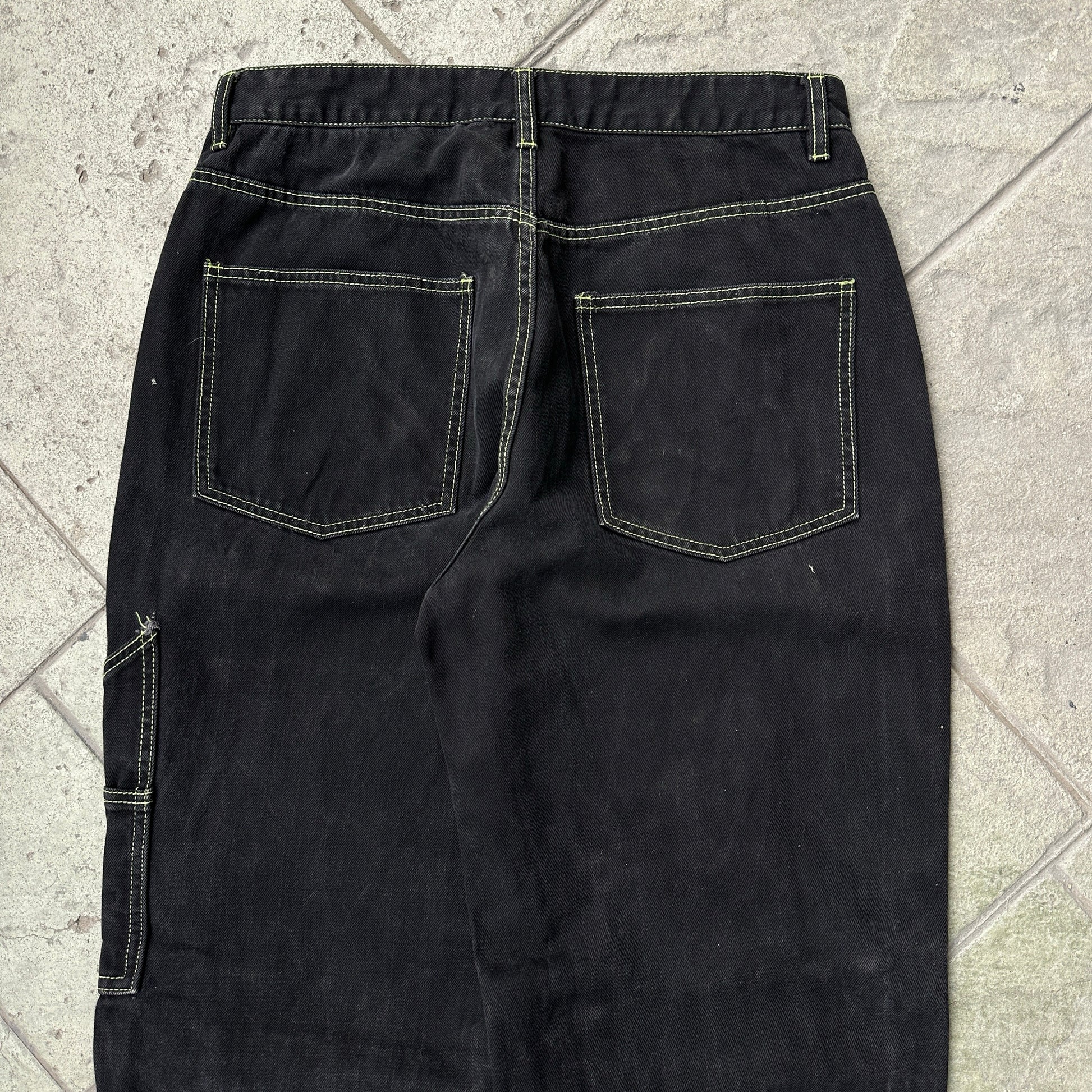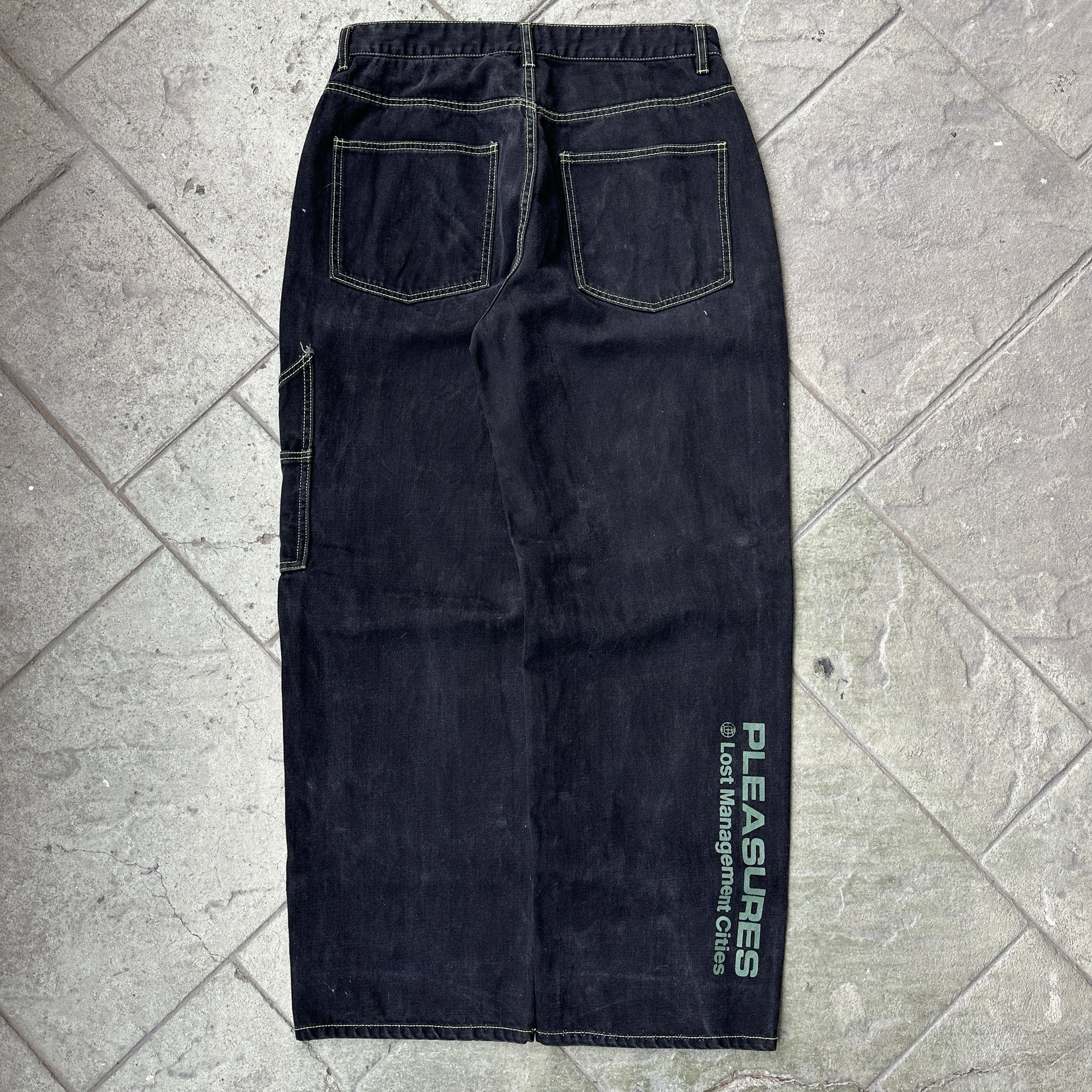 Pantalon Pleasures De Hombre Talla L 32x30 Color Negro Desvanecido Baggy Y2K Doble Rodilla