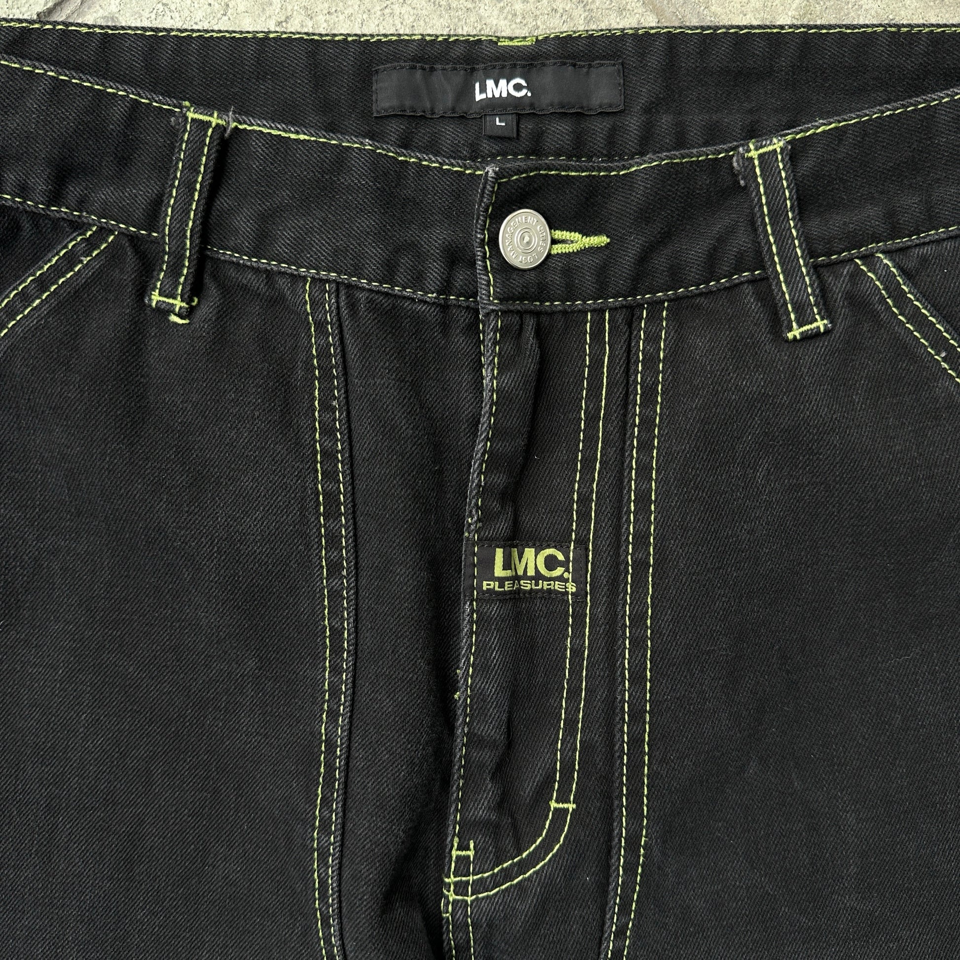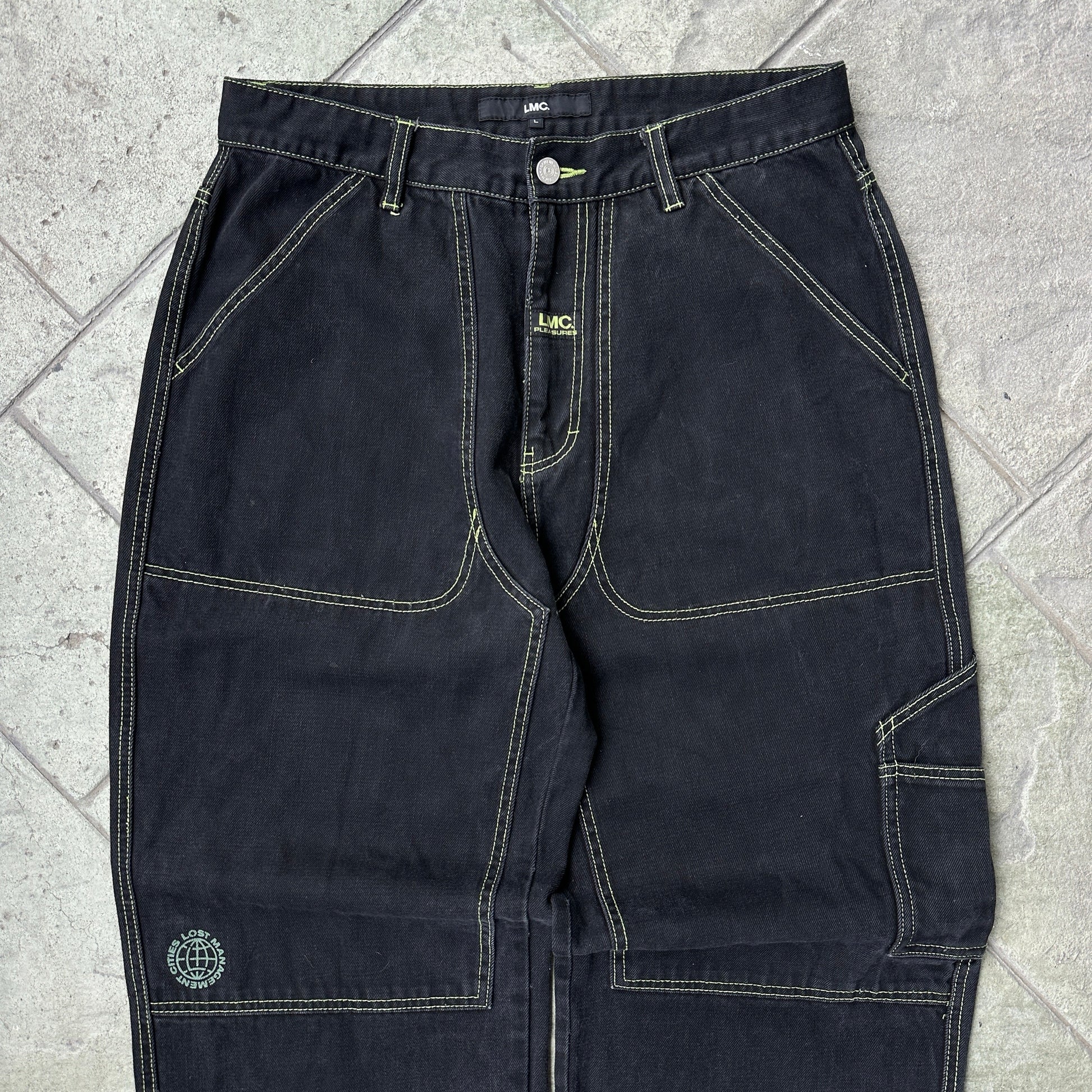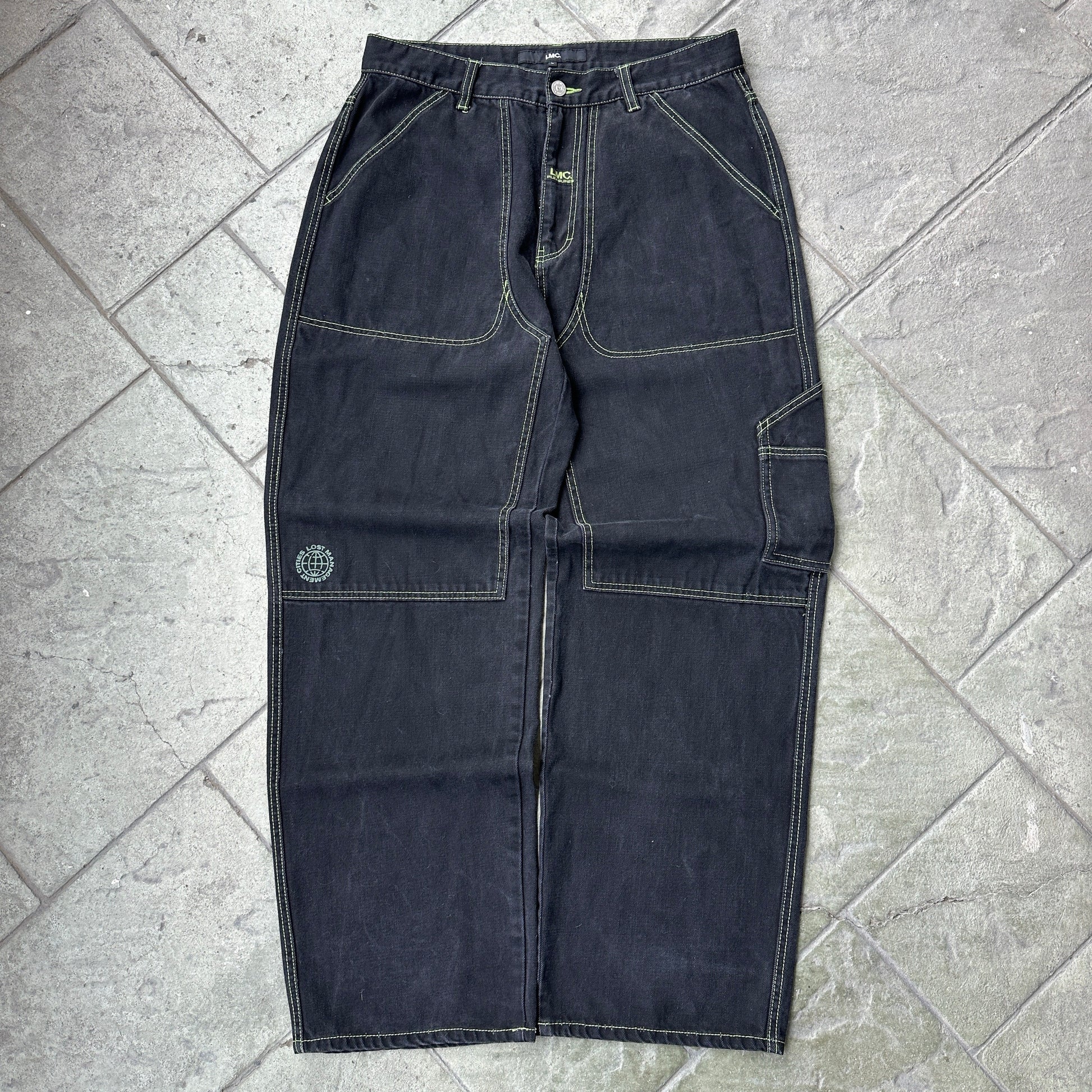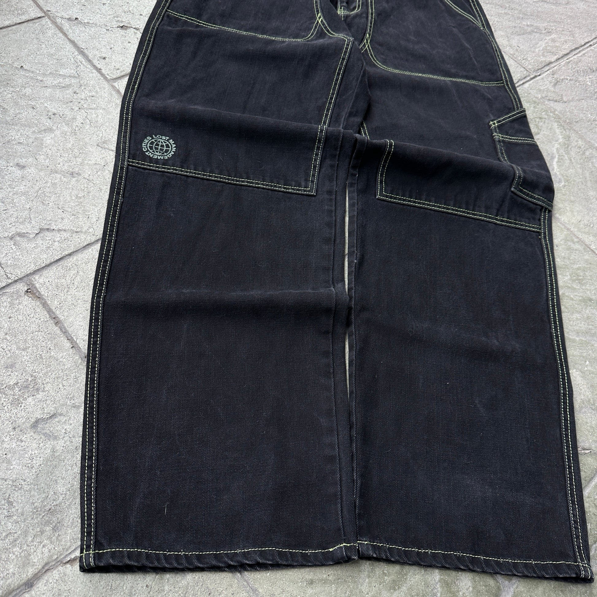Pantalon Pleasures De Hombre Talla L 32x30 Color Negro Desvanecido Baggy Y2K Doble Rodilla