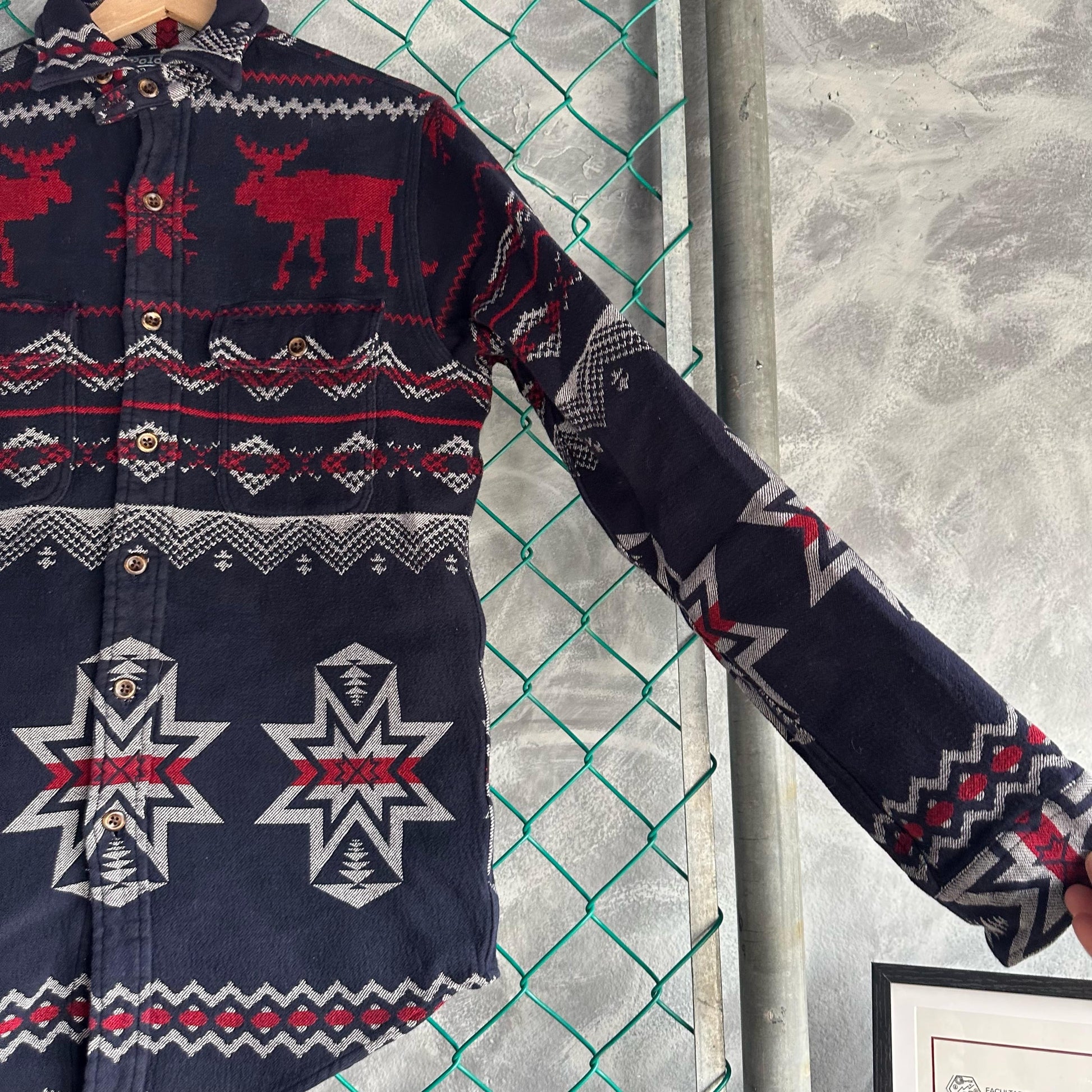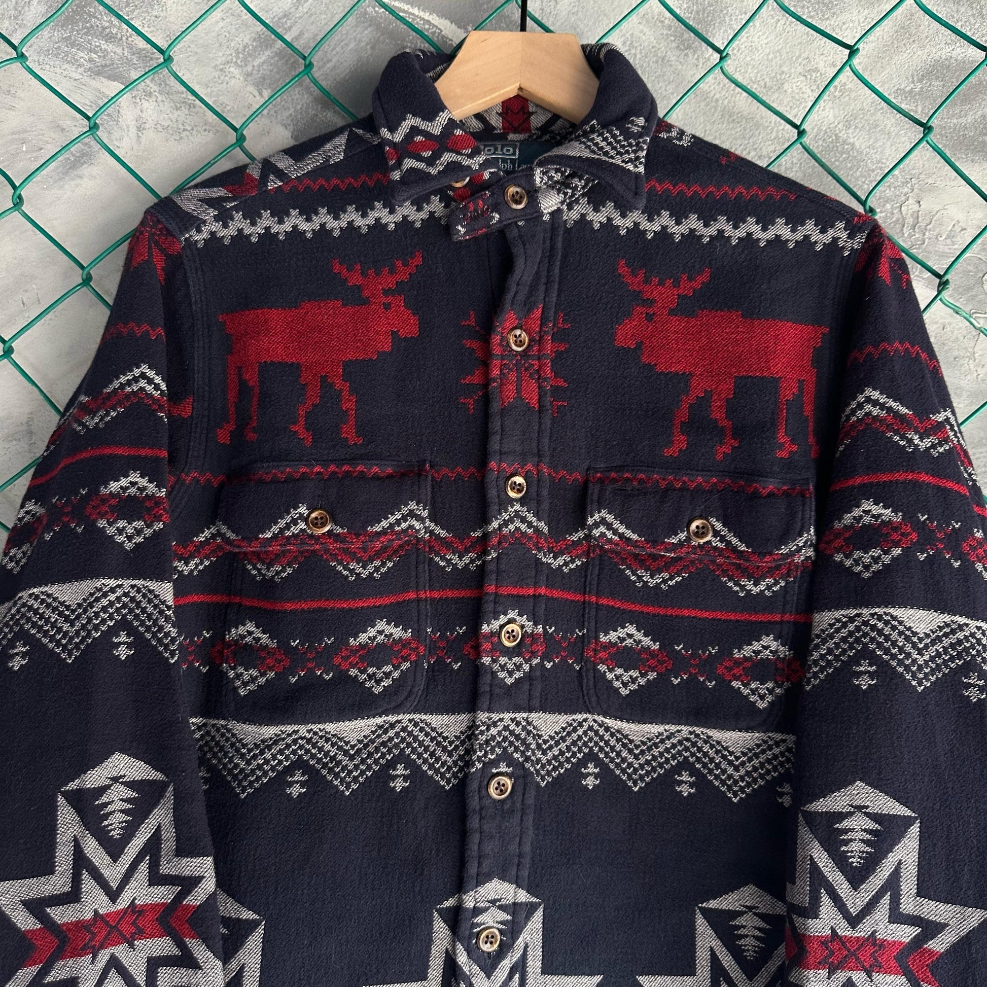 Franela Vintage Polo Ralph Lauren De Hombre Tall S Color Azul Marino Jacquard Alces