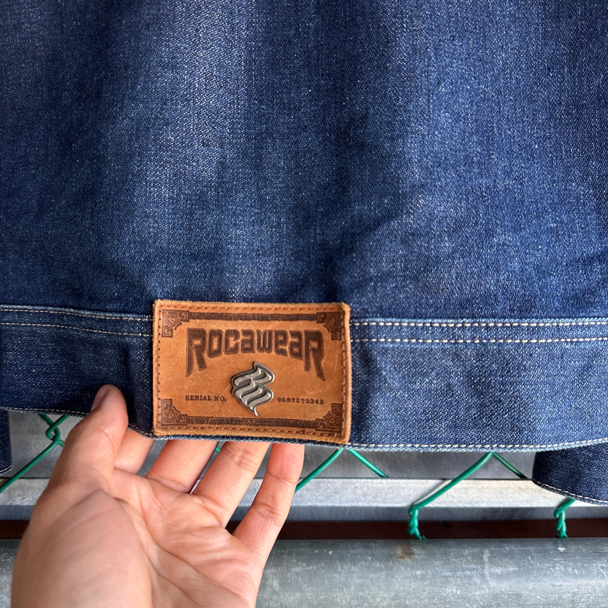 Chamarra Vintage Rocawear De Hombre Talla 2XL Color Azul Marino Mezclilla Y2K