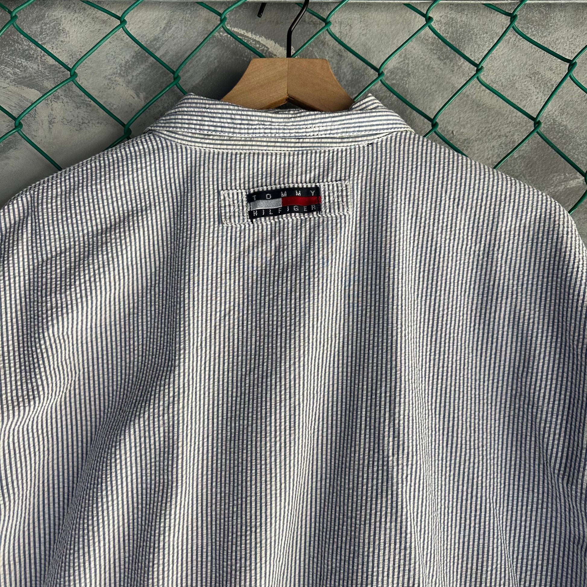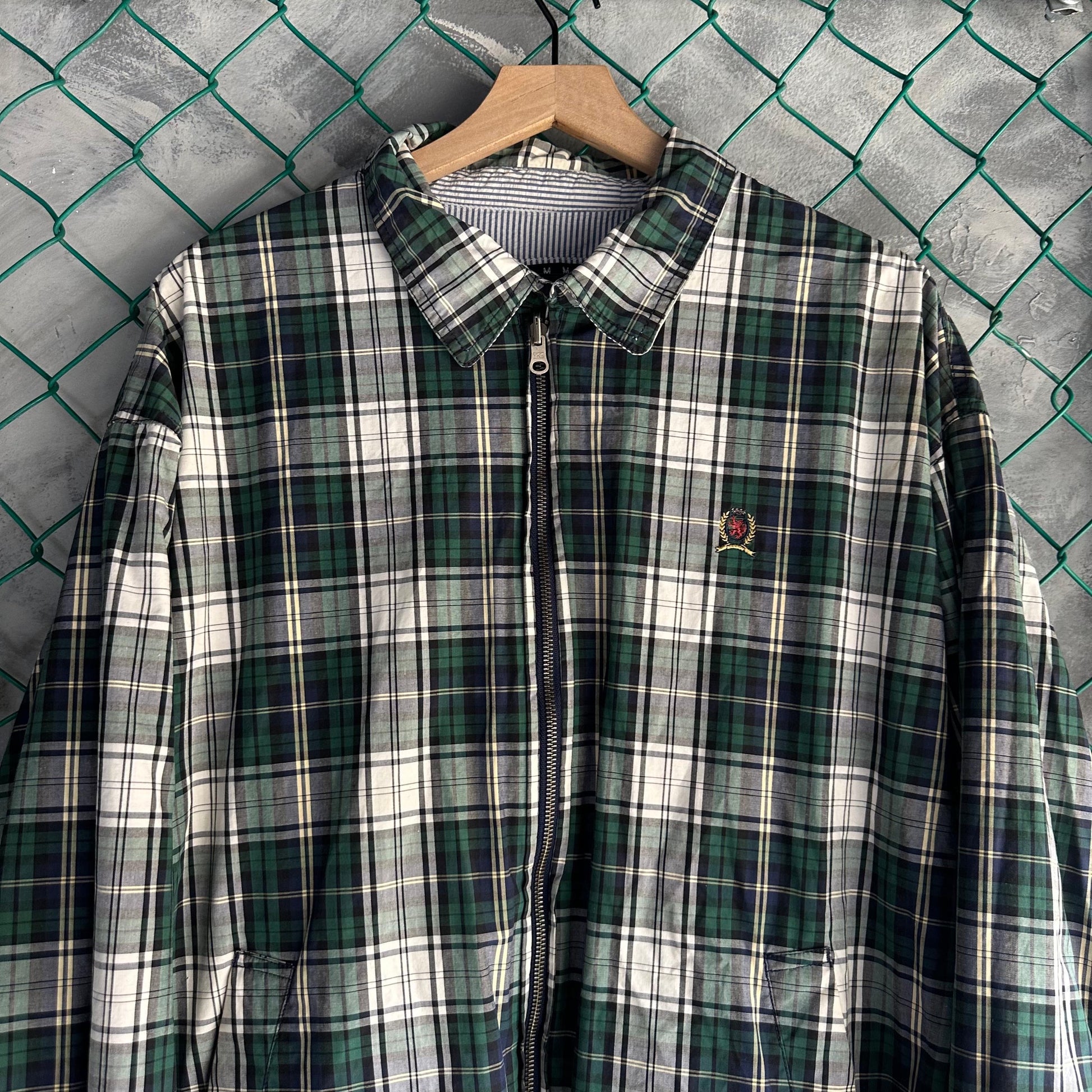 Chamarra Vintage Tommy Hilfiger De Hombre Talla XL Reversible Cuadros y Rayas Color Verde Blanco