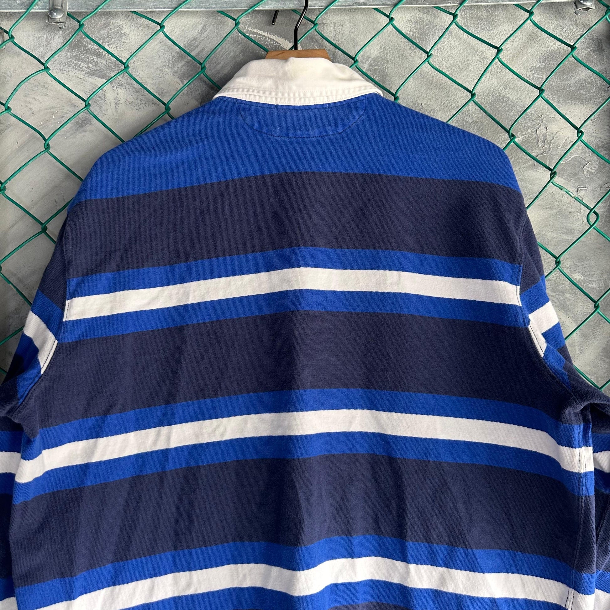 Camisa Vintage Polo de Rugby Polo Ralph Lauren De Hombre Talla L Color Azul y Blanco De Rayas Y2K