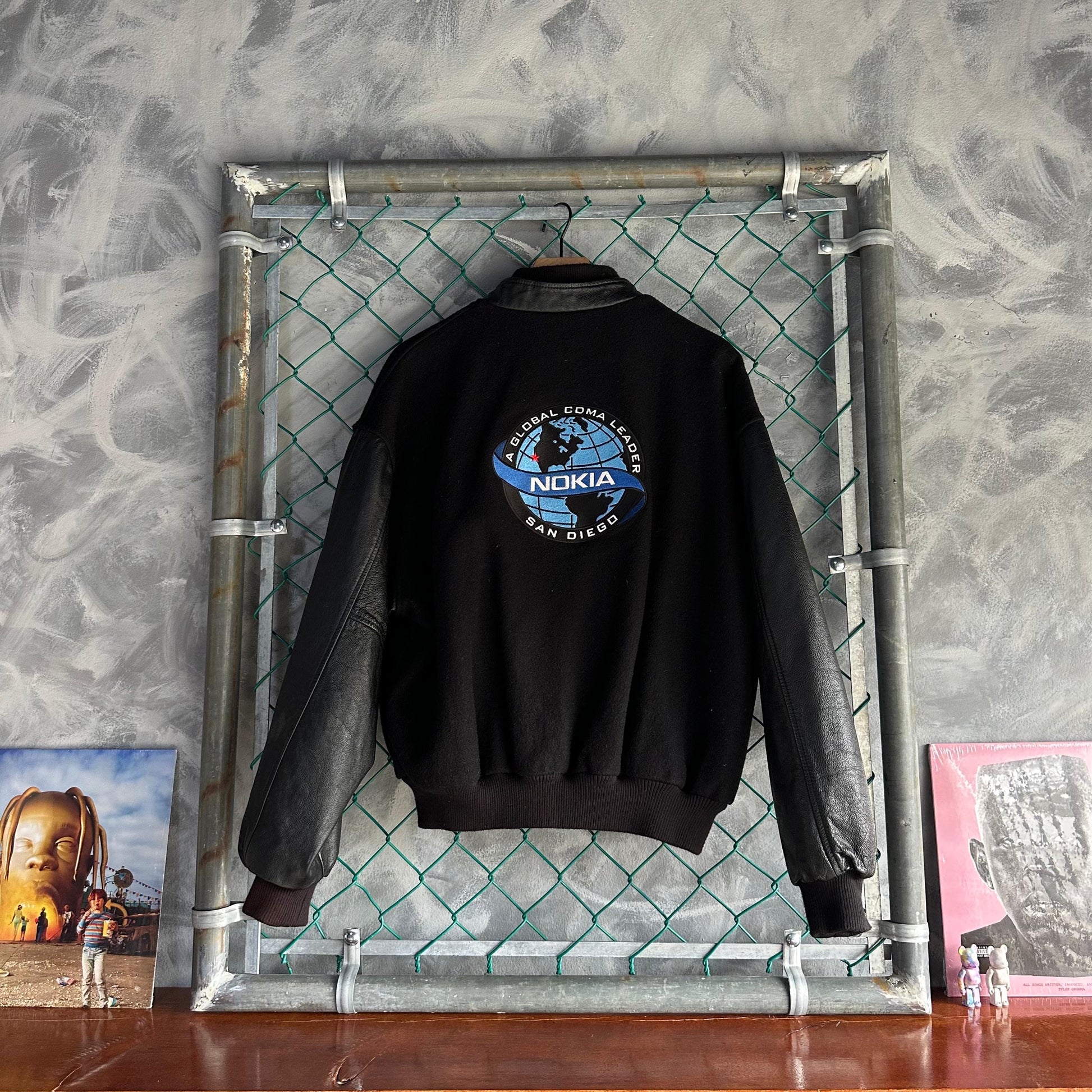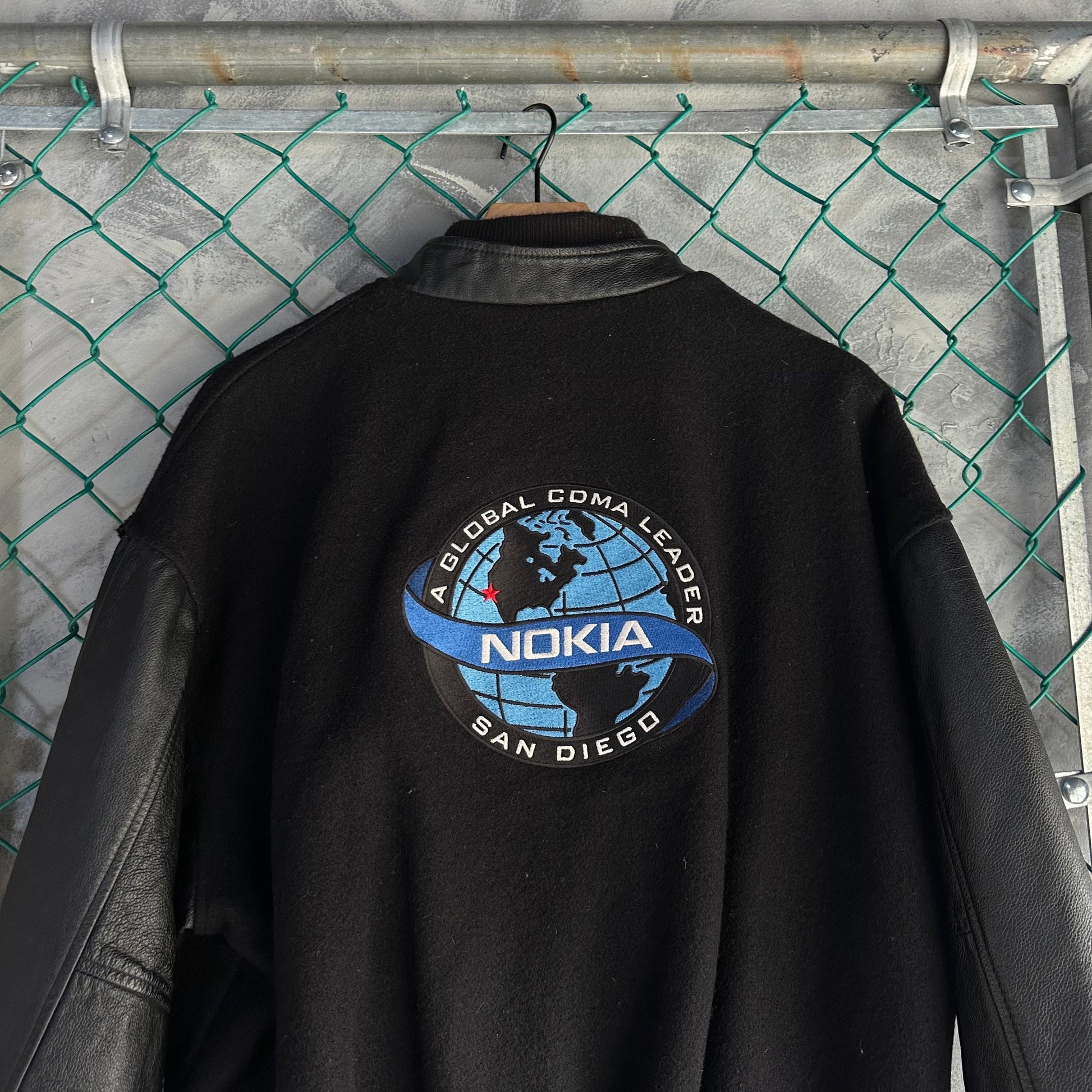Chamarra Vintage Nokia San Diego Global De Hombre Talla XL Color Negro Varsity Letterman De Piel