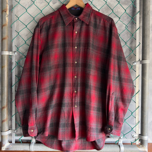Camisa de Botenes de Lana Pendleton De Hombre Talla L Franela De Cuadros Rojos Y Gris Y Negro